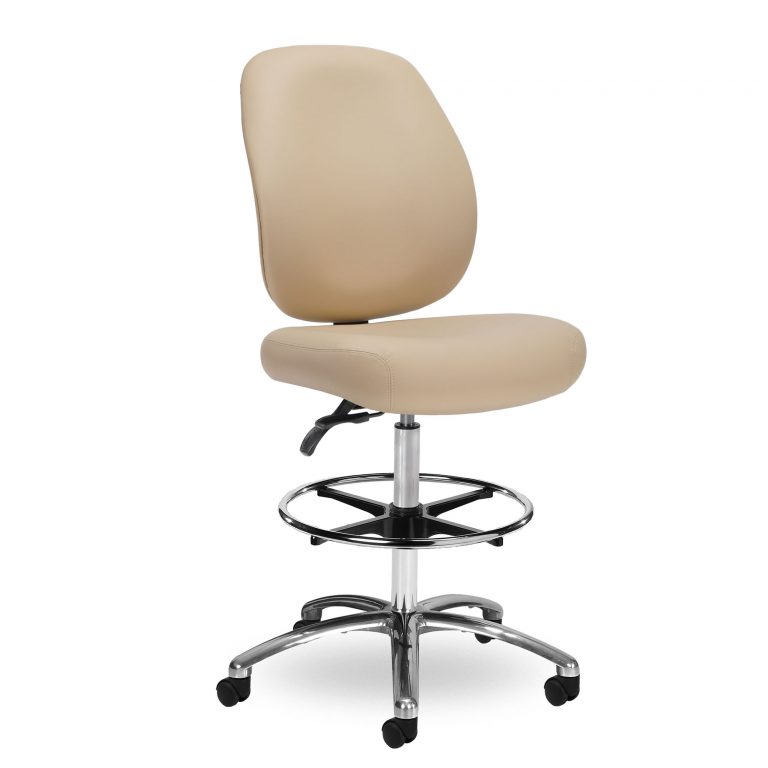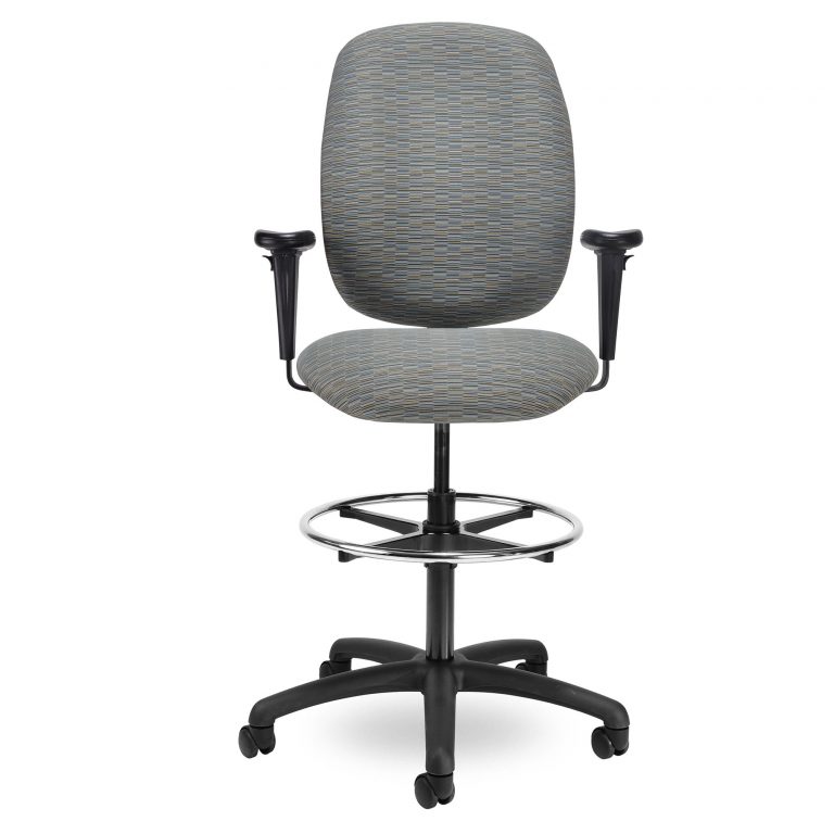 Contour II: Trouble-free workhorse with curved back provides support all day long. Also available in matching task and swivel configurations, for users up to 300lbs.