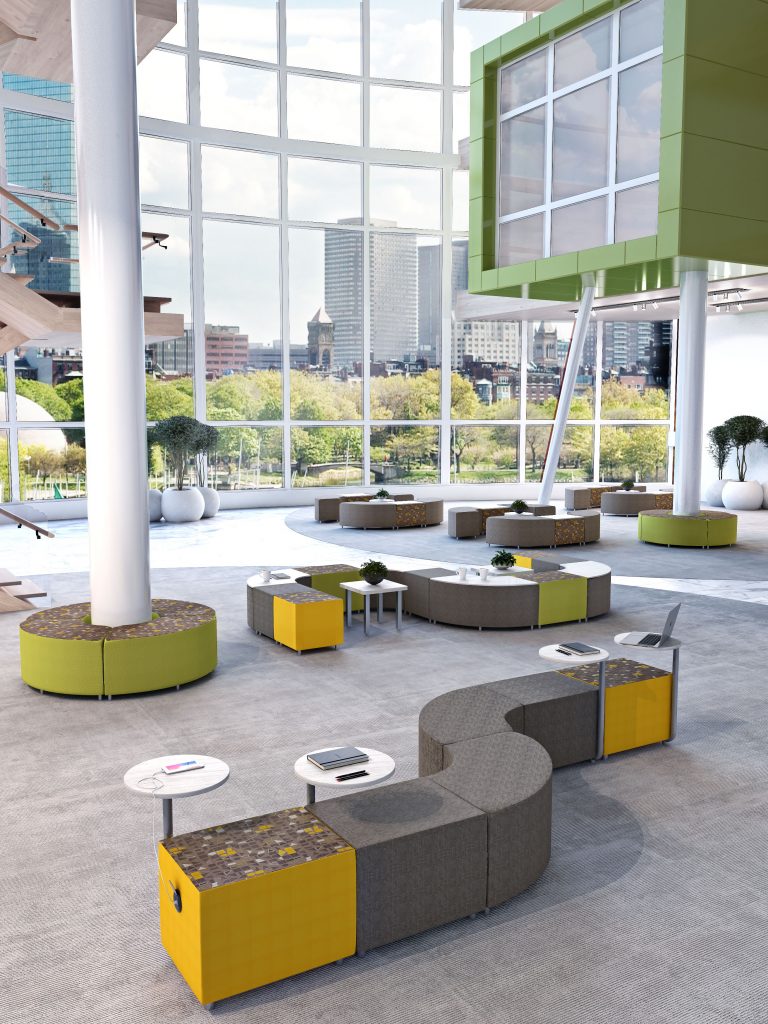 Dock’s versatile seating units create unique collaborative spaces. Use Dock Square, Bench, and Quarter round to create shapes!