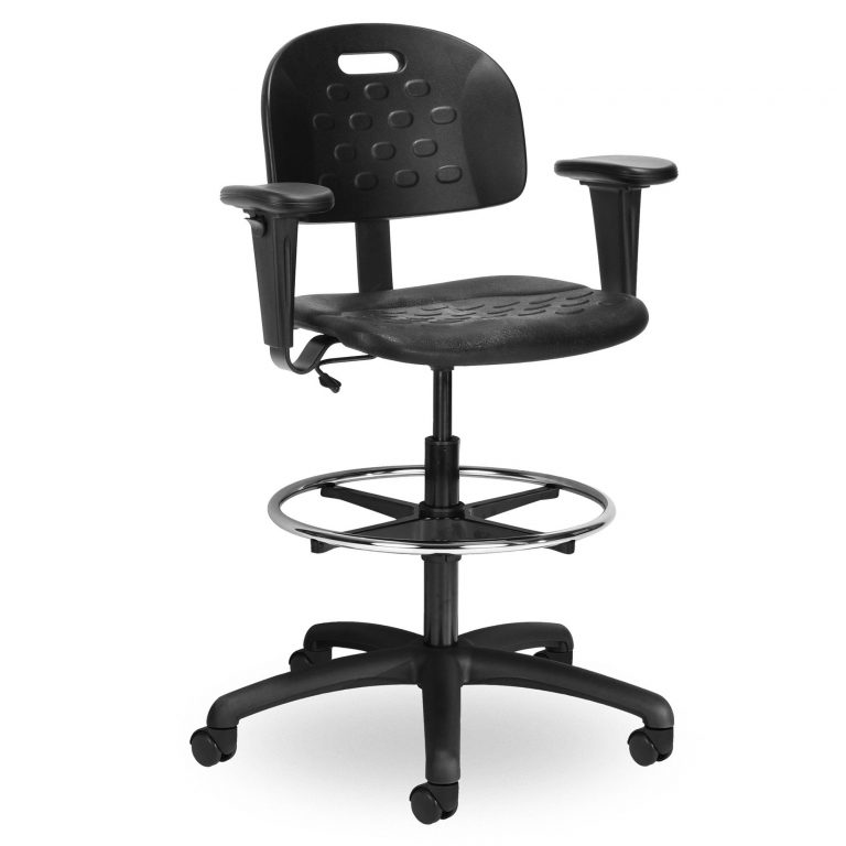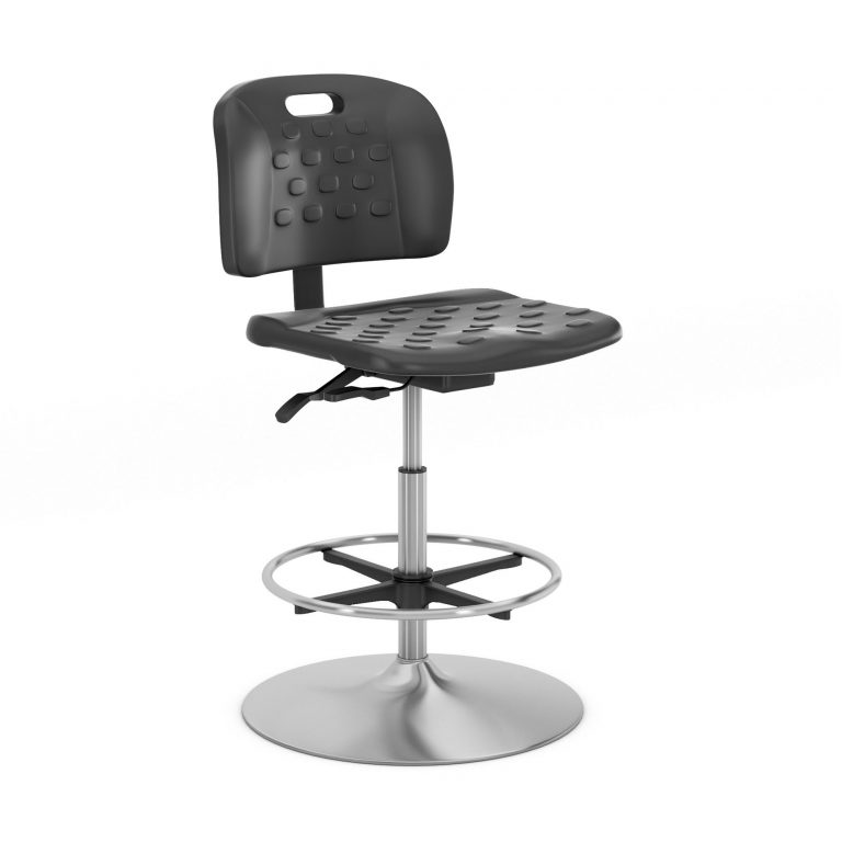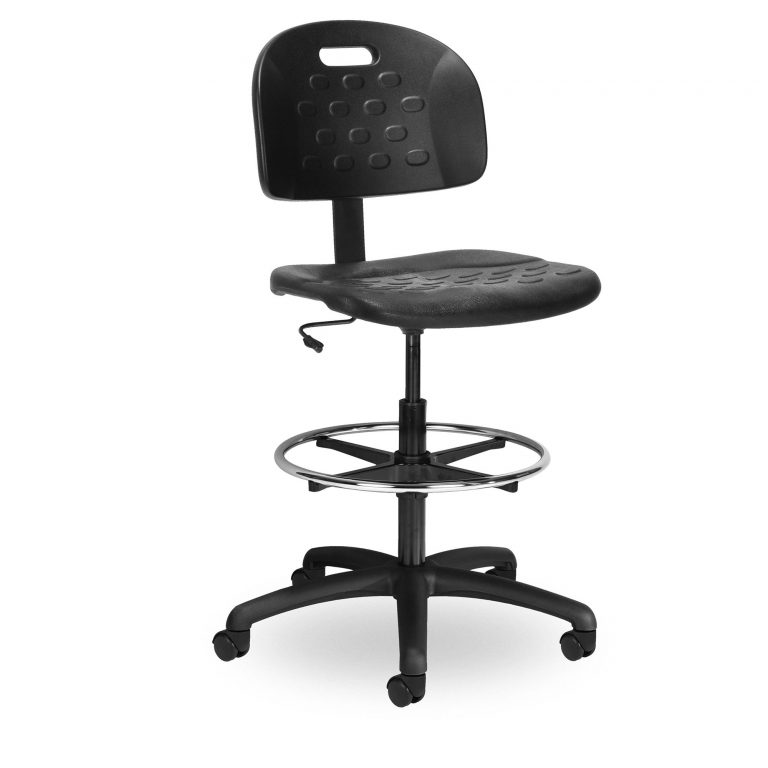 Indy: Durable, black injection molded polyurethane seat and back. For use in high traffic areas. Also available in matching stool and stackable configurations, for users up to 300 lbs.