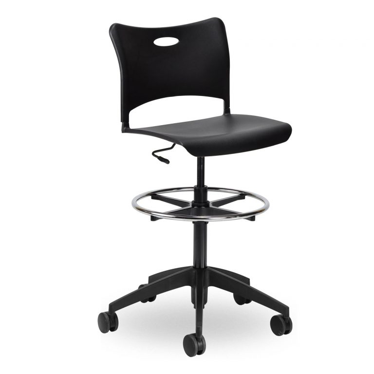 Indy: Durable, black injection molded polyurethane seat and back. For use in high traffic areas. Also available in matching stool and stackable configurations, for users up to 300 lbs.