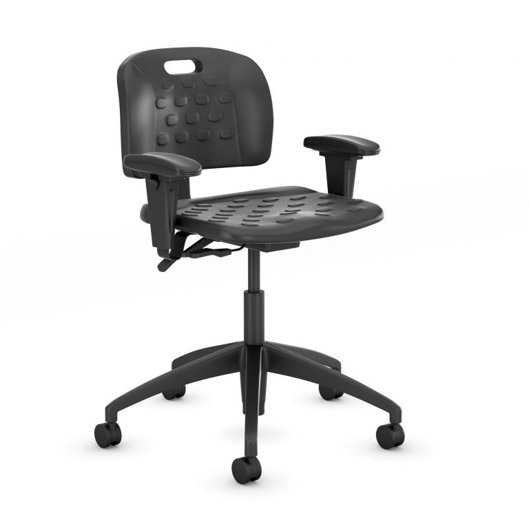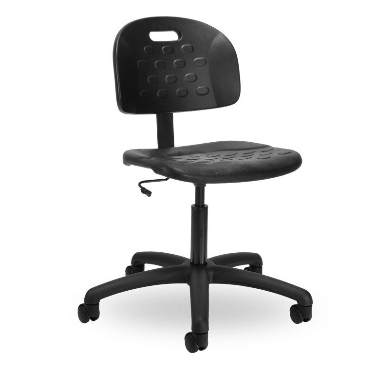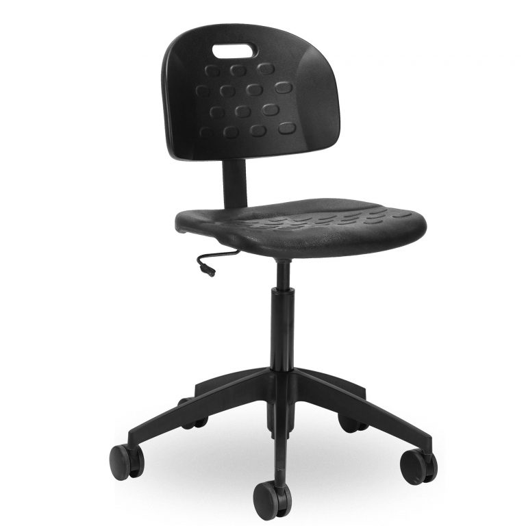 Indy: Durable, black injection molded polyurethane seat and back. For use in high traffic areas. Also available in matching stool and stackable configurations, for users up to 300 lbs.
